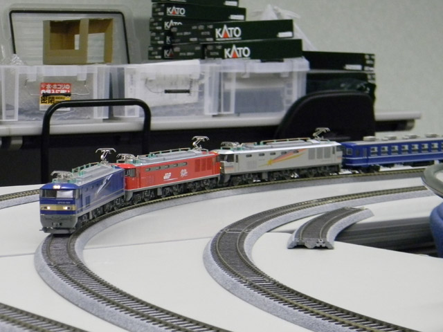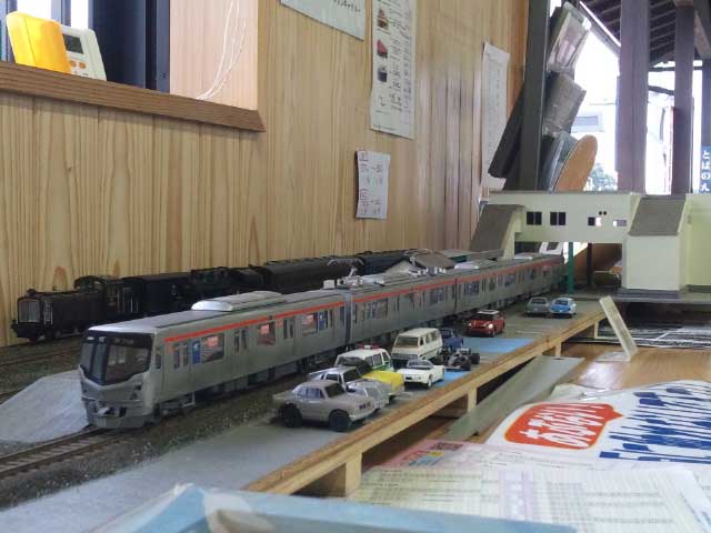 今回もNゲージをメインに、HO(16番)ゲージの車両も自動運転で往復していました。