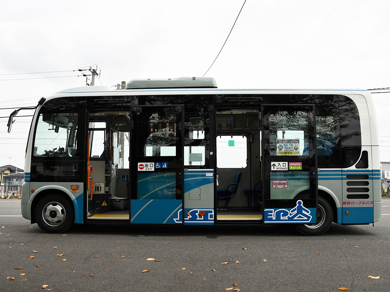 ▲ 「筑西・下妻広域連携バス」運行開始に合わせて導入された「ポンチョ」ロングボディ。Suica・PASMO対応で、スムーズな乗降が可能です。