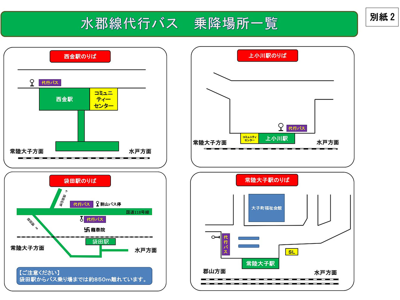 ▲西金~常陸大子間の代行バス乗降場所です。(JR東日本 水戸支社の発表より)