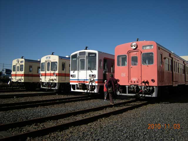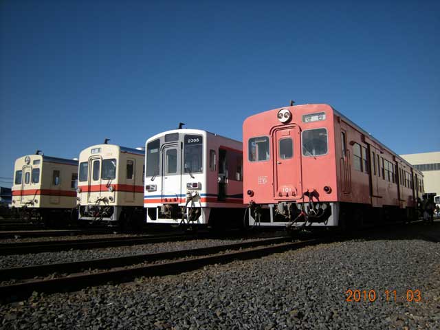 今年は東側から、朱色の「キハ101」、「キハ2308」+「キハ2807」、「キハ008」+「キハ007」、「キハ358」+「キハ3511」が展示されました。