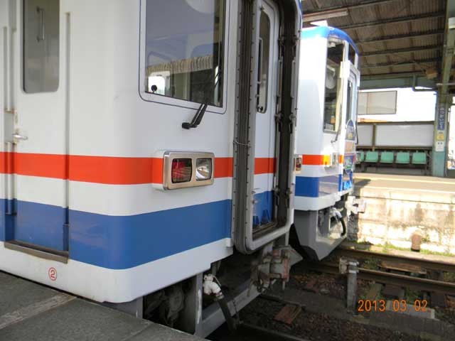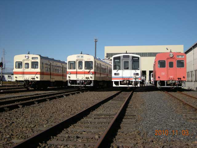 最大時は4両が「キハ100形」となりましたが、「キハ2200形」の増備が進んだことにより、「キハ103」「キハ104」は「キハ300形」に戻され、現在は「キハ101」「キハ102」の2両のみが稼働しています。