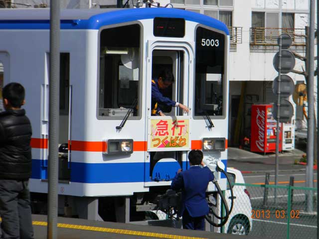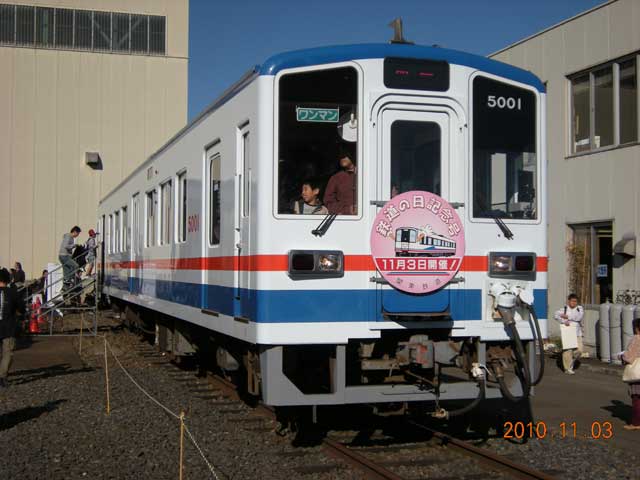 昨年新造された「キハ5001」は、ヘッドマーク掲示で体験乗車に供されていました。
