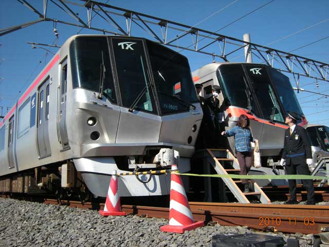 ▲ スピード感にあふれる「TX-1000系」と「TX-2000系」。新幹線や特急だけでなく、一般の電車も「顔」(先頭形状)の善し悪しが路線のイメージをも変えます。TXは大成功してますね。(クリックすると拡大画像を表示します)。