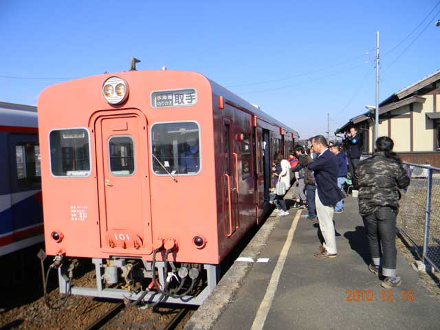 ▲ イベント参加者は、水海道駅~車両基地の臨時直通列車(4両編成)に乗車。