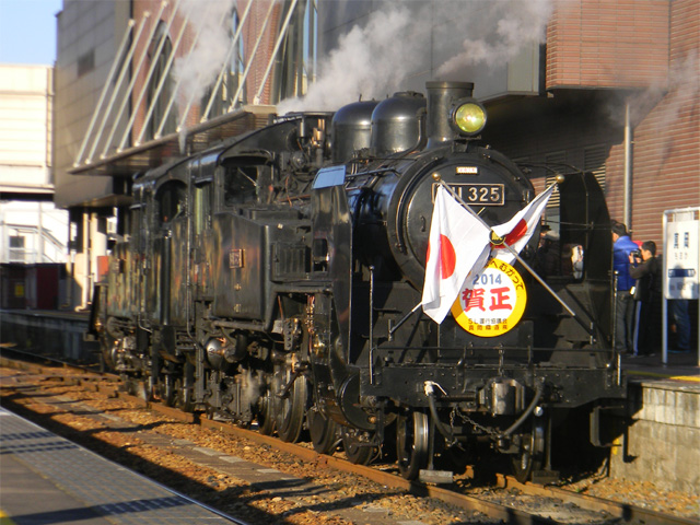 ▲ 2014年1月5日(日)、真岡鐵道でSL2両だけによる重連運転が行われました。復路の真岡駅で撮影。(クリックすると拡大画像を表示します)