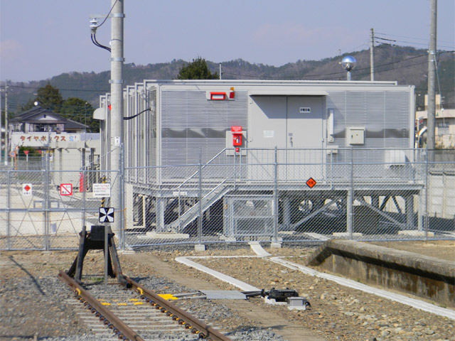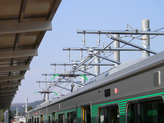 ちょっと場所を変えて、今度は変電&充電施設の方から撮影してみました。