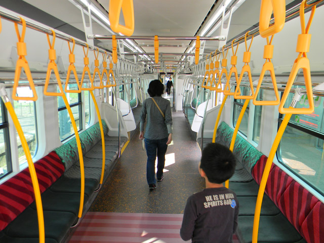 ▲ 車内はロングシートです。(クリックすると拡大画像を表示します)