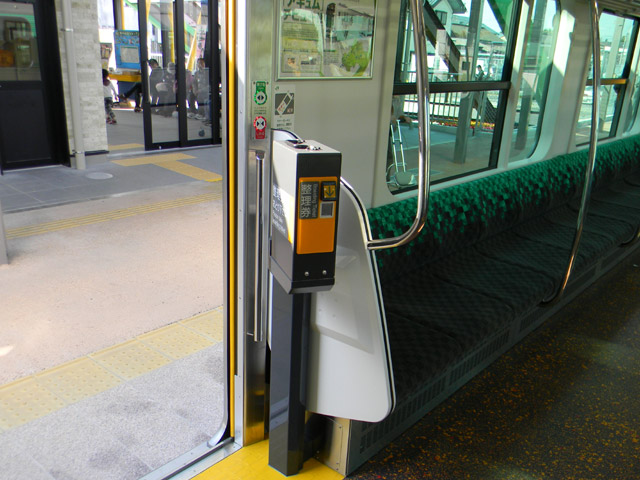 「HU300形」は、芳賀・宇都宮LRTがICカード乗車券を利用して信用乗車方式(セルフレジ方式)を導入するのに対応して、全ドアに簡易改札機(タッチパネル)を設置しています。
