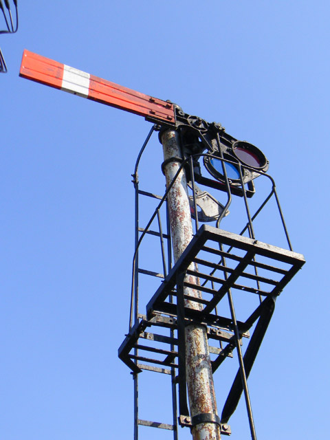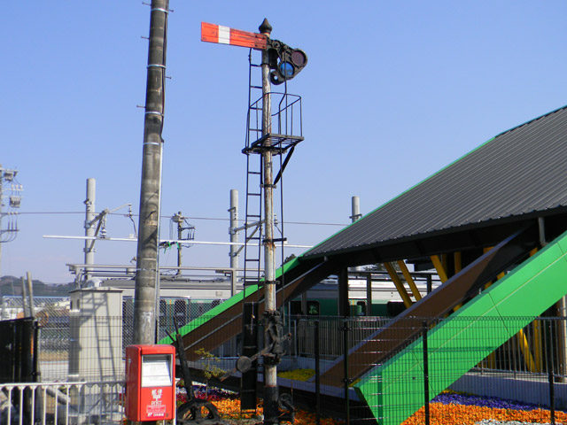 駅舎の隣には、腕木式信号機がオブジェとして設置されています。