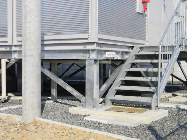 ▲ 「EV-E301系」導入に合わせて設置された充電施設。施設は高床式になっています。(クリックすると拡大画像を表示します)