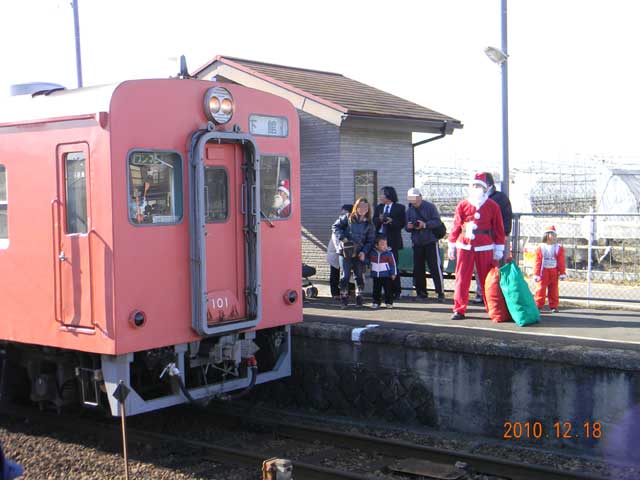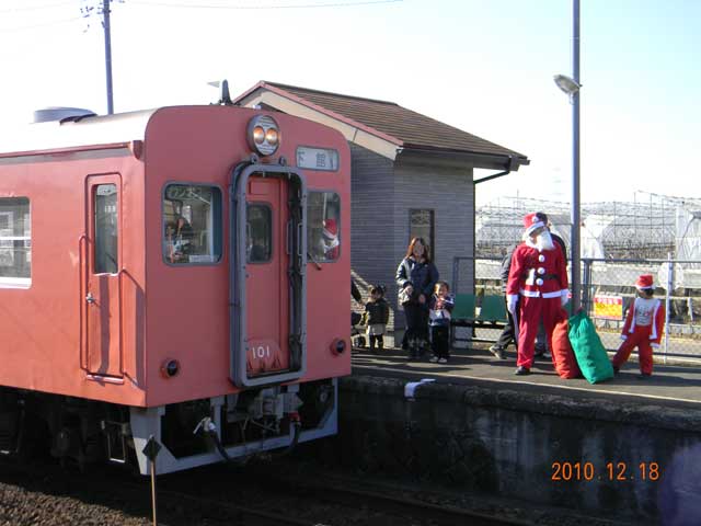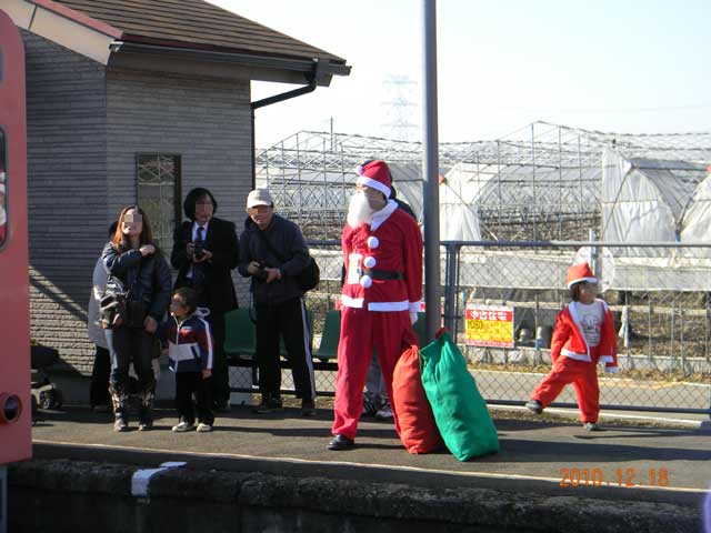 ▲ 2013年12月21日(土)、関東鉄道常総線「騰波ノ江(とばのえ)」駅で、「とばのえステーションギャラリー・Xmas特別企画 ~あわてんぼうのサンタクロース~ サンタが駅にやってくる in 騰波ノ江駅」が行われます。写真は2010年の模様です。(クリックすると拡大画像を表示します)