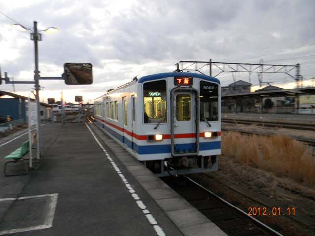 ▲ 下館駅に入線してきた「キハ5002」。今後さらなる増備が行われるものと思います。(クリックすると拡大画像を表示します)
