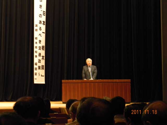 ▲ 福田 富一 知事は、「私の夢」と前置きしつつも、東は茂木(できれば「ツインリンクもてぎ」)、西は日光まで直通するトラムトレインを実現したいと発言しました。(クリックすると拡大画像を表示します)