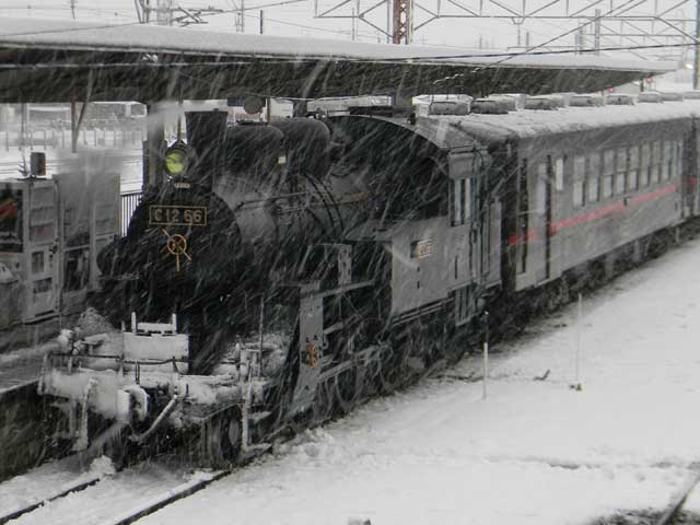 昼を過ぎて風雪が強まり、JR各線の運転見合わせが相次いできたので、「SLもおか」も往路だけで運転打ち切りになるのかな……と思っていましたが、さにあらず。