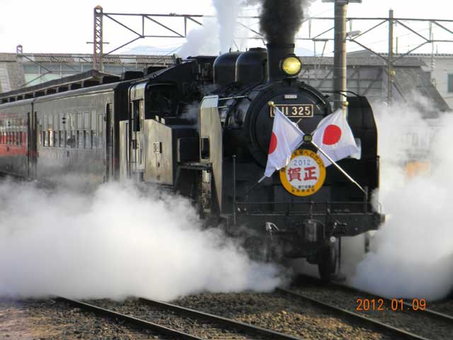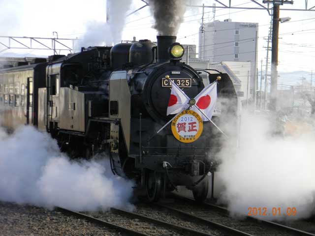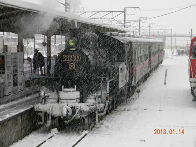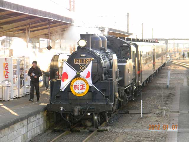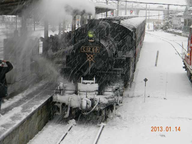元々は2014年1月4日(土)に「SL新年号」の運行を予定していたのですが、昨年12月に発生した客車の台車脱線トラブルの影響で「SLもおか」号としての運行が行えなくなったため、代替措置としてSLだけによる重連運転が行われたわけです。