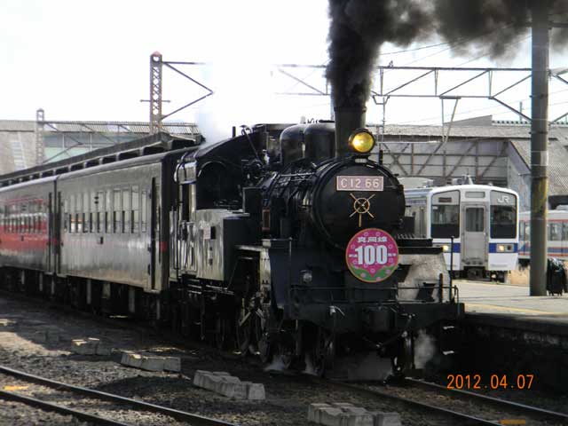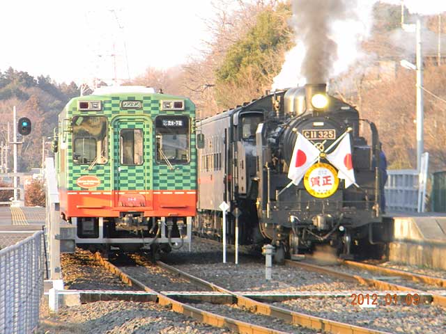 重連運転を行ったのは、普段週末を中心に「SLもおか」号を牽引している「C12 66」と「C11 325」の2両の蒸気機関車。
