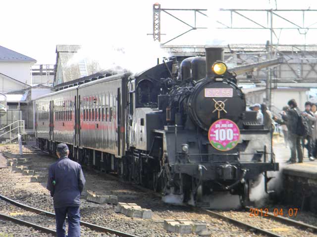 ▲ 帰路は「C12」が先頭でしたが、真岡駅で御役御免に。ヘッドマークは手早く外され、真岡から先頭に立つ「C11」に改めて装着。(クリックすると拡大画像を表示します)