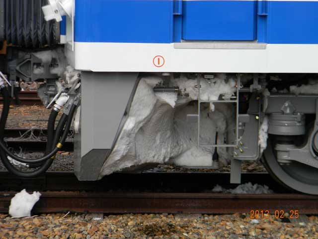 一部台車が脱線したのは緩急車の「オハフ50」で、他の2両から切り離されて修理中でした。