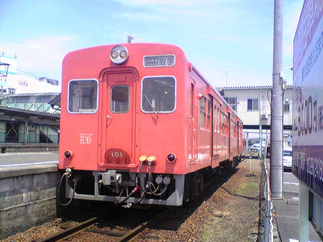 先頭は「キハ007」で、その後に2両の「キハ310形」(たぶん「キハ313」「キハ314」)が続きます。