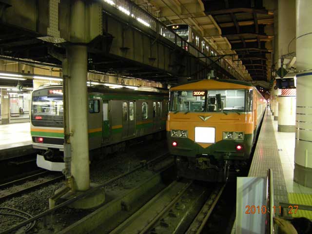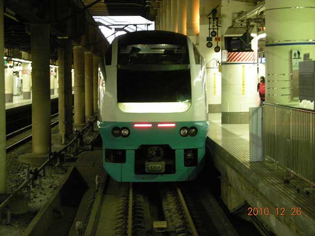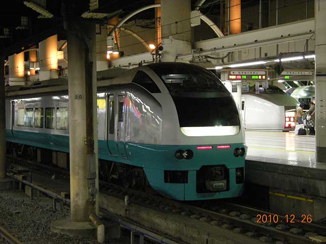 ▲ 2010年12月26日(日)夜、上野駅の地平ホームにて撮影。「いつまでも居ると思うな185系&651系」……というところでしょうか。(クリックすると拡大画像を表示します)