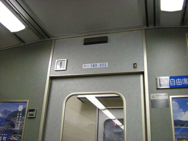 車内は従来のままで、普通席はえんじ色、優先席は紺色でした。