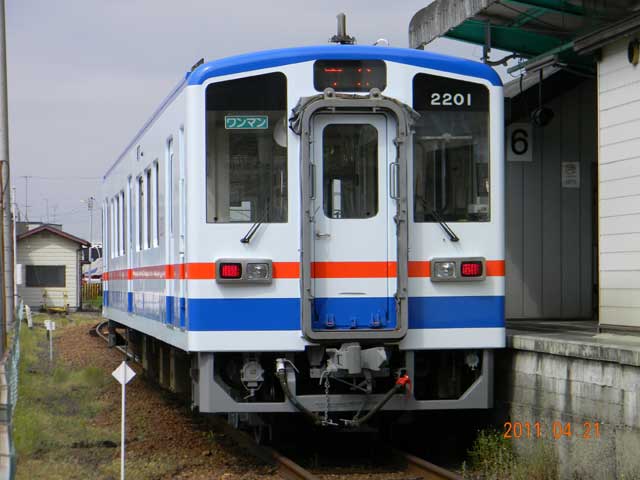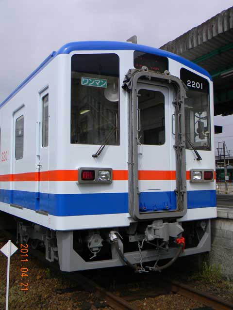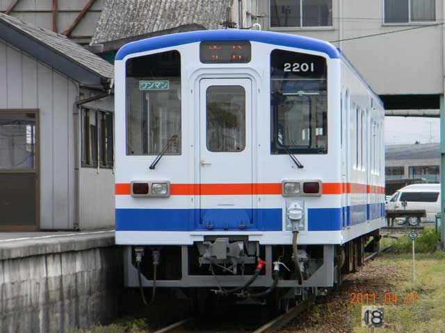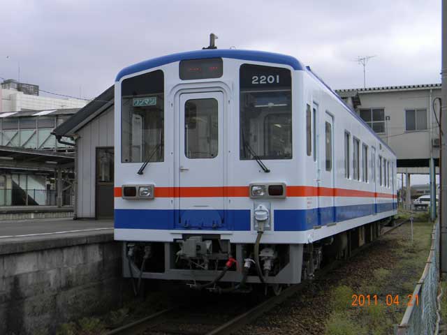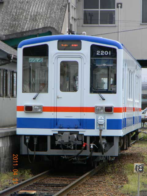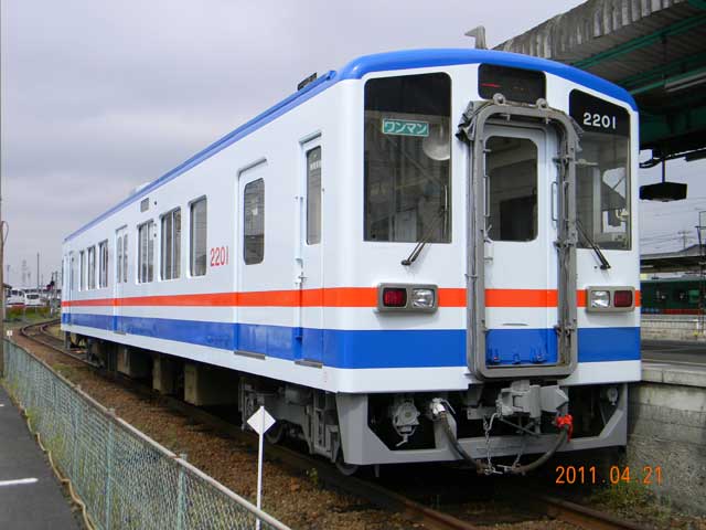 ▲ 「キハ5000形」と同じカラーリングになった「キハ2201」。2011年4月21日(木)9:20頃、下館駅6番線に停車しているところを撮影。(画像をクリックすると拡大画像を表示できます)