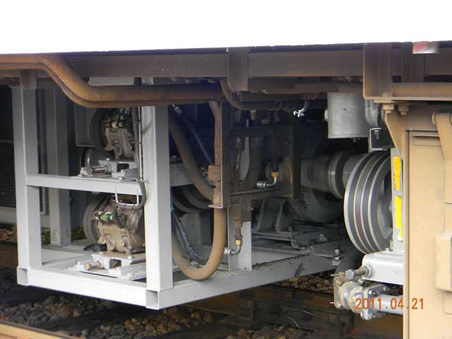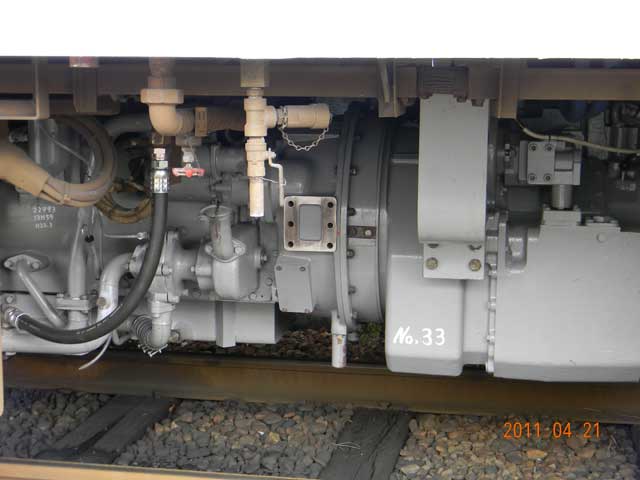 床下の台車やエンジン、機器類は、基本的にはグレーに塗り替えられていました。